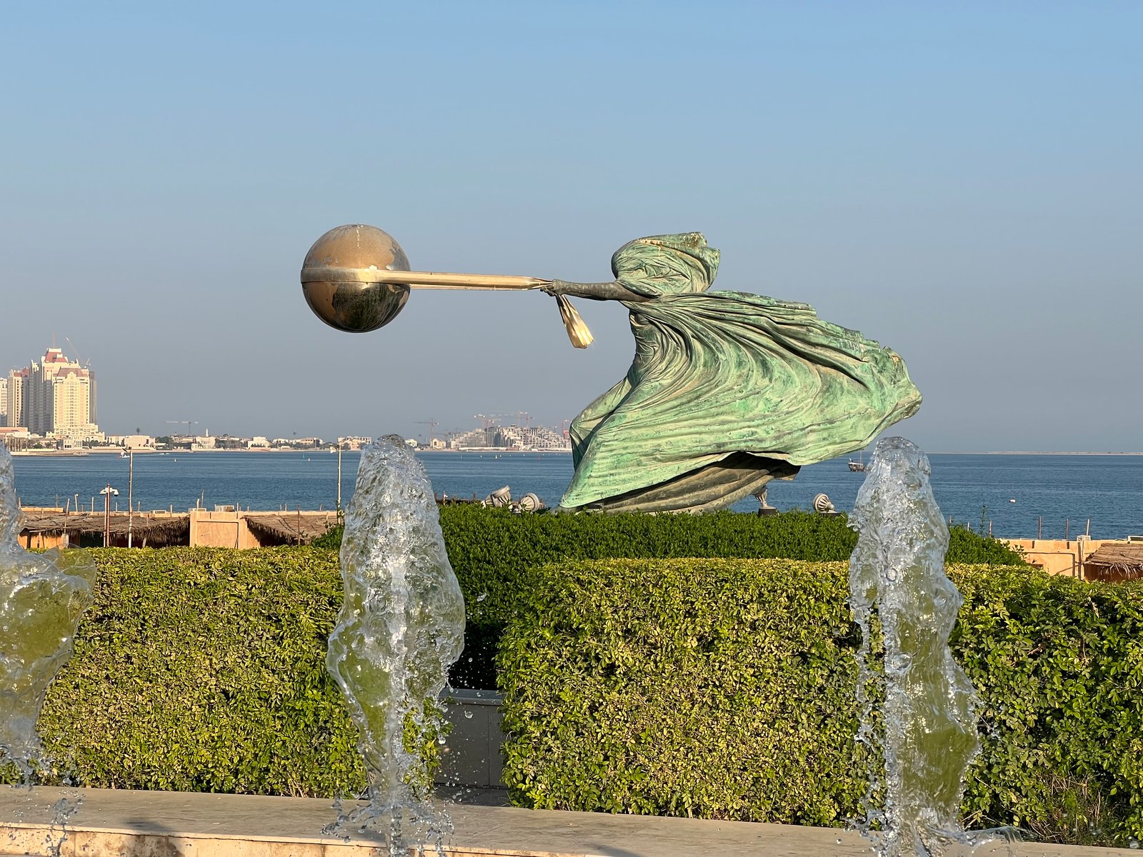 The Force of Nature II at the Katara Amphitheatre is a large bronze sculpture by Lorenzo Quinn depicting Mother Nature as a woman hurling the planet in circles.
